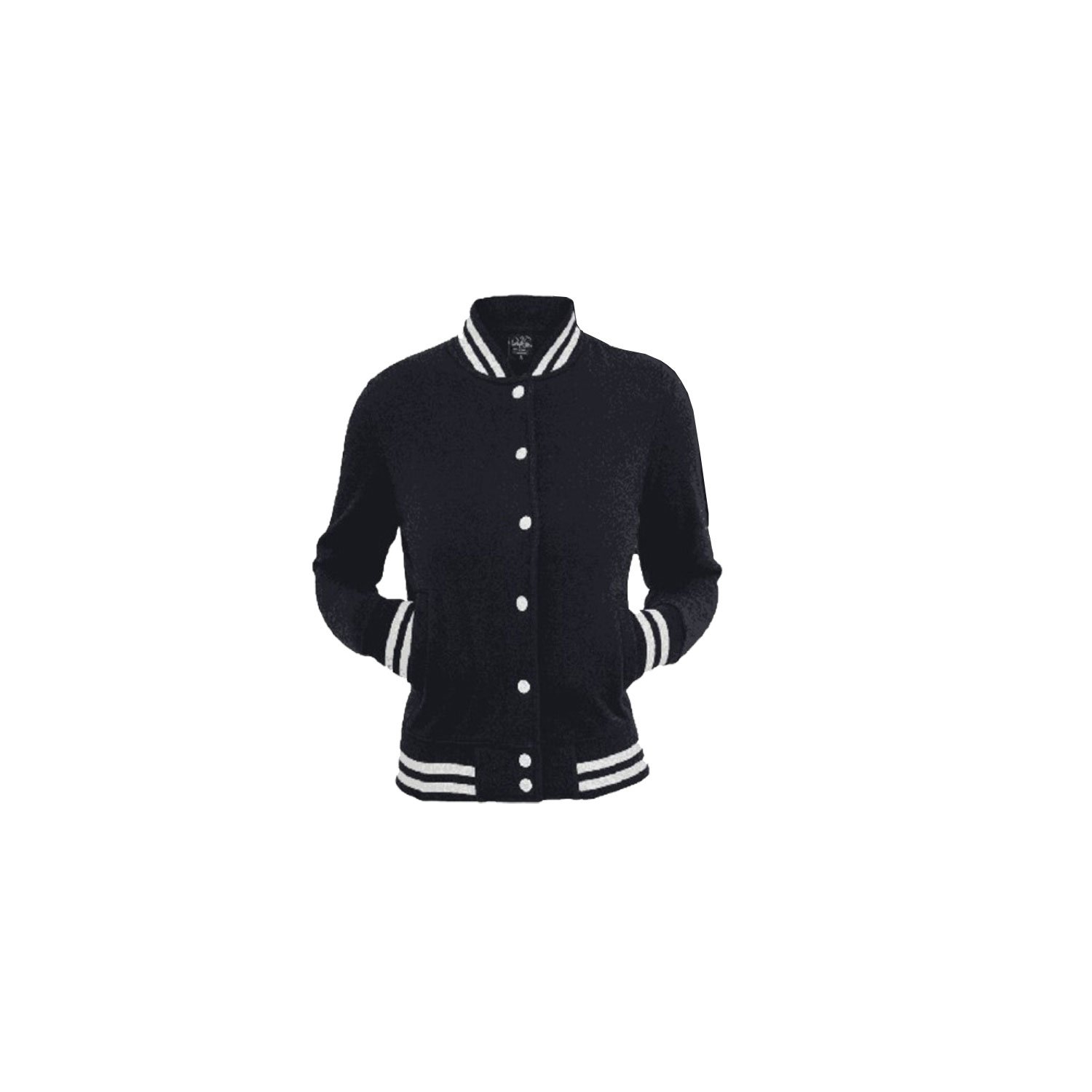 Material: Varsity Jacket, 320gsm, Cotton Brushed Loopknit, White Sleeve/Black Body, 88% cotton, 12% polyester