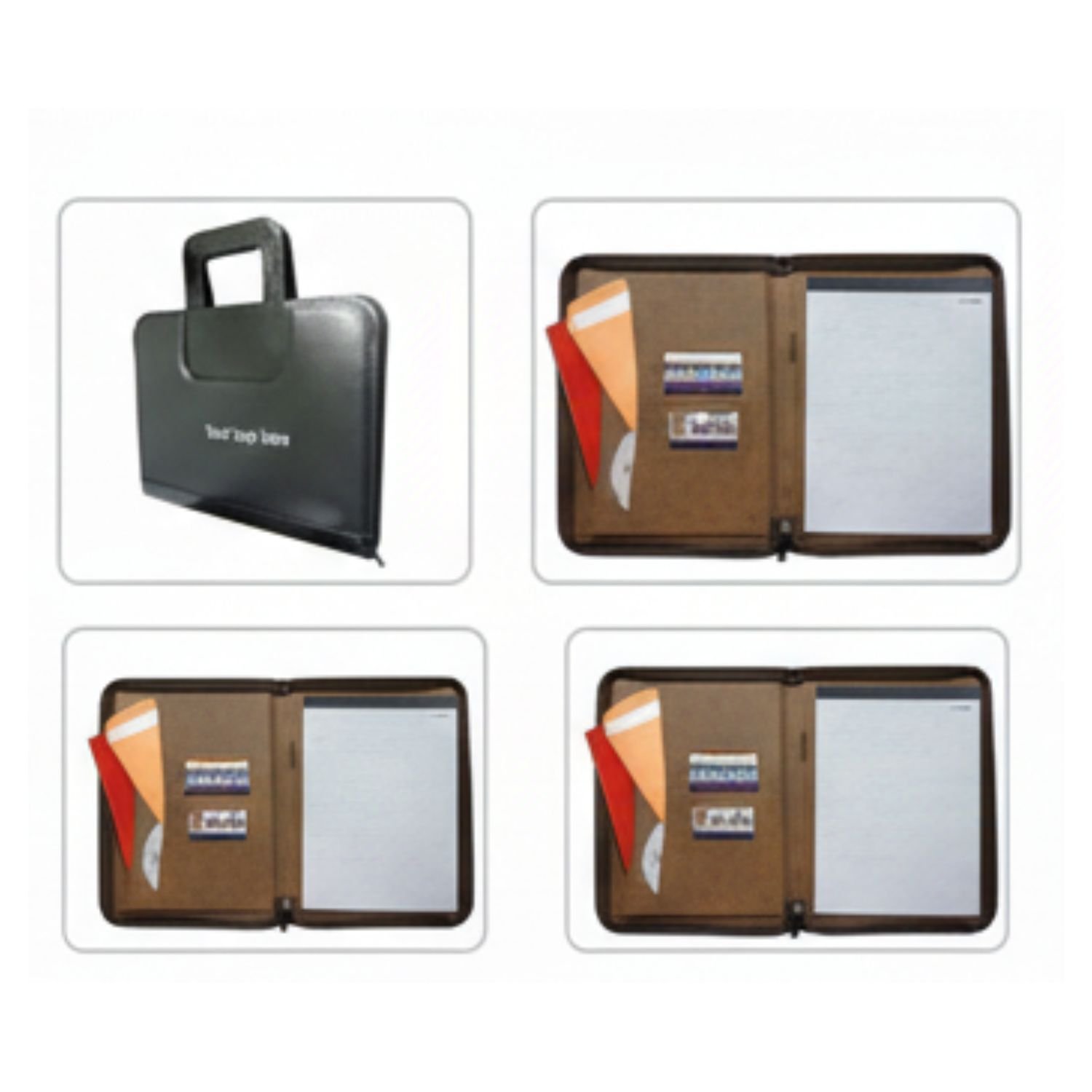 Crafted from durable PU leather, it offers a polished appearance while keeping your documents protected and neatly arranged. The folder includes multiple pockets, a writing pad slot, card holders, and a secure closure—making it the perfect companion for professionals on the move.
