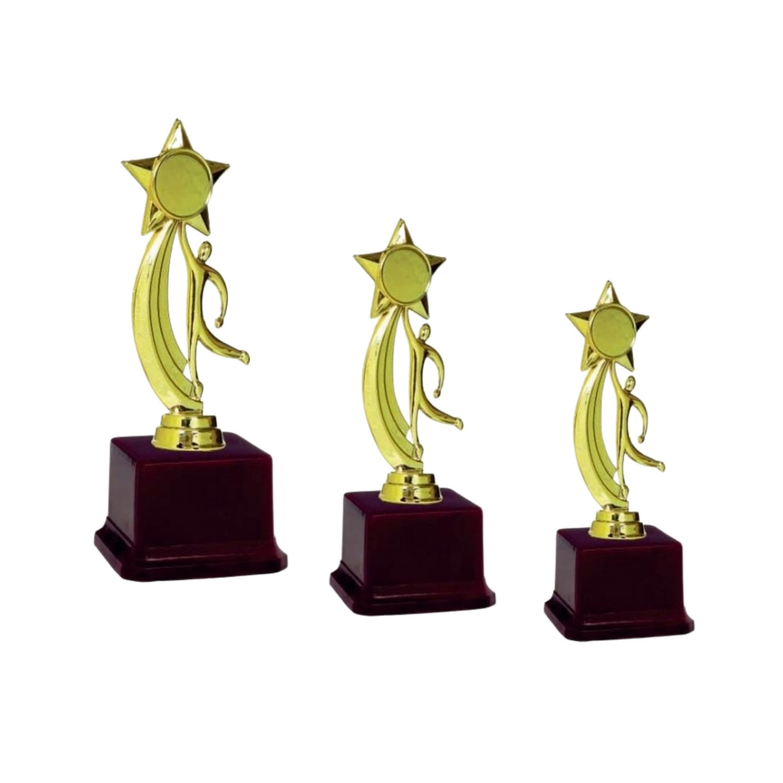 Recognize excellence in style with our Customized Trophy – Star Curve Design, crafted with a premium gold-finish top and elegant star-accented curve. The central round plate can be fully customized with your logo, message, or award title, making it the perfect award for school, sports, and corporate events. The sturdy base ensures long-lasting durability and a premium display.