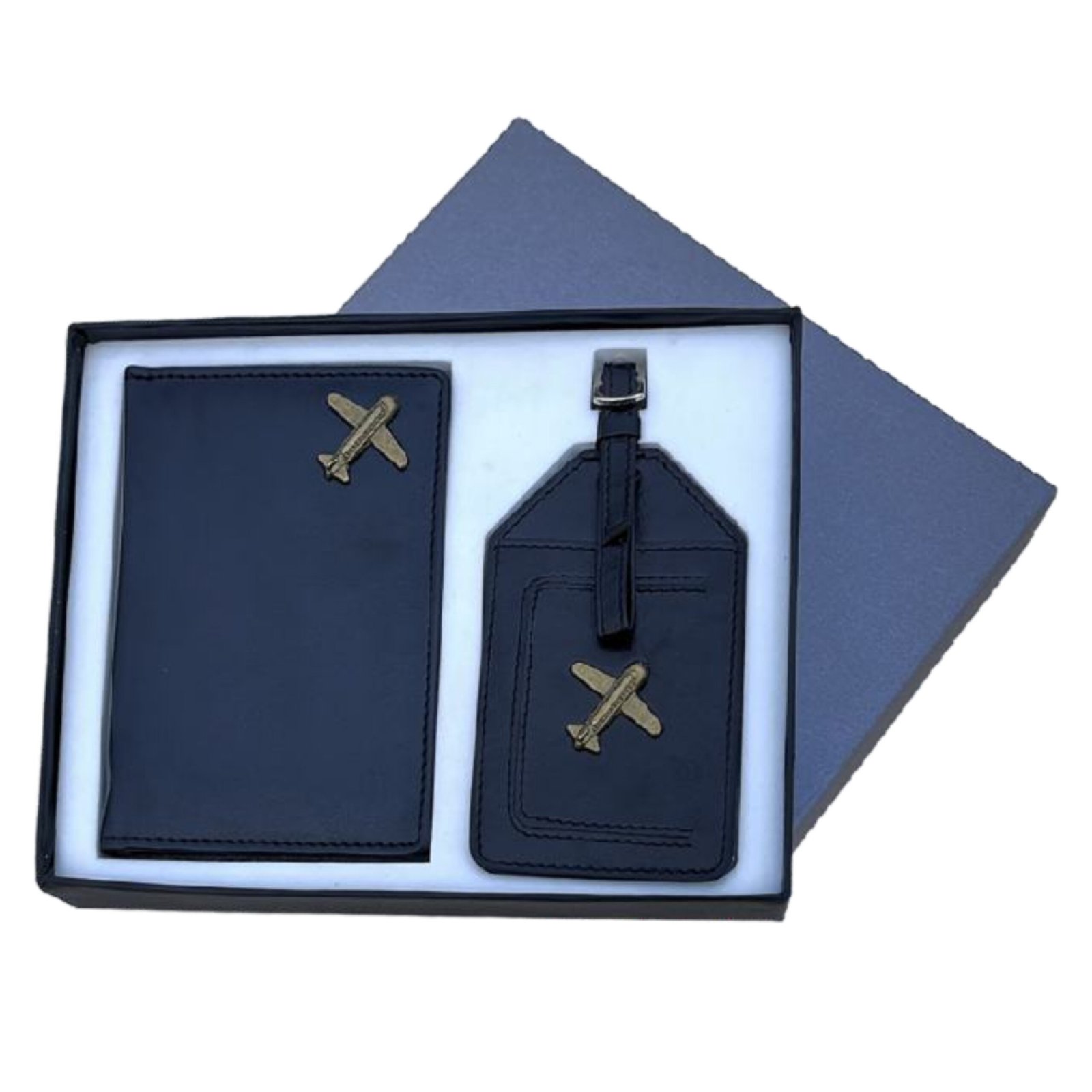 A premium 2-in-1 gift set featuring a stylish vegan leather passport cover with card slots and a matching luggage tag—both enhanced with elegant metal fittings. Designed for travelers and ideal for corporate gifting, events, and personalized giveaways. Packed in a premium card board box for an elegant presentation. Available in Black.
