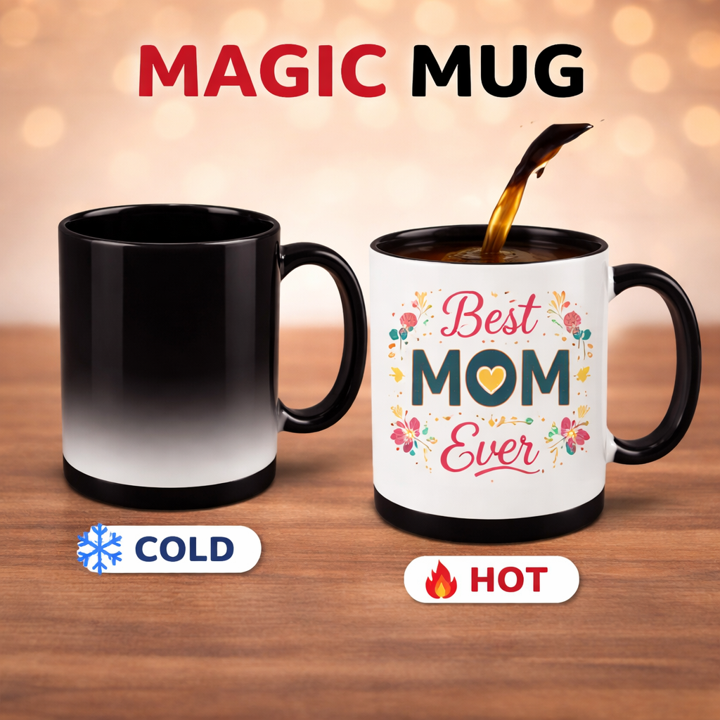 Bring a touch of surprise to every sip with our Customized Photo Magic Mug. This heat-sensitive mug looks plain black when cold, but magically reveals a hidden photo or design when hot liquid is poured inside. Perfect for gifting on birthdays, anniversaries, Valentine’s Day, Mother’s Day, or corporate occasions, this magic mug turns everyday coffee moments into unforgettable memories.