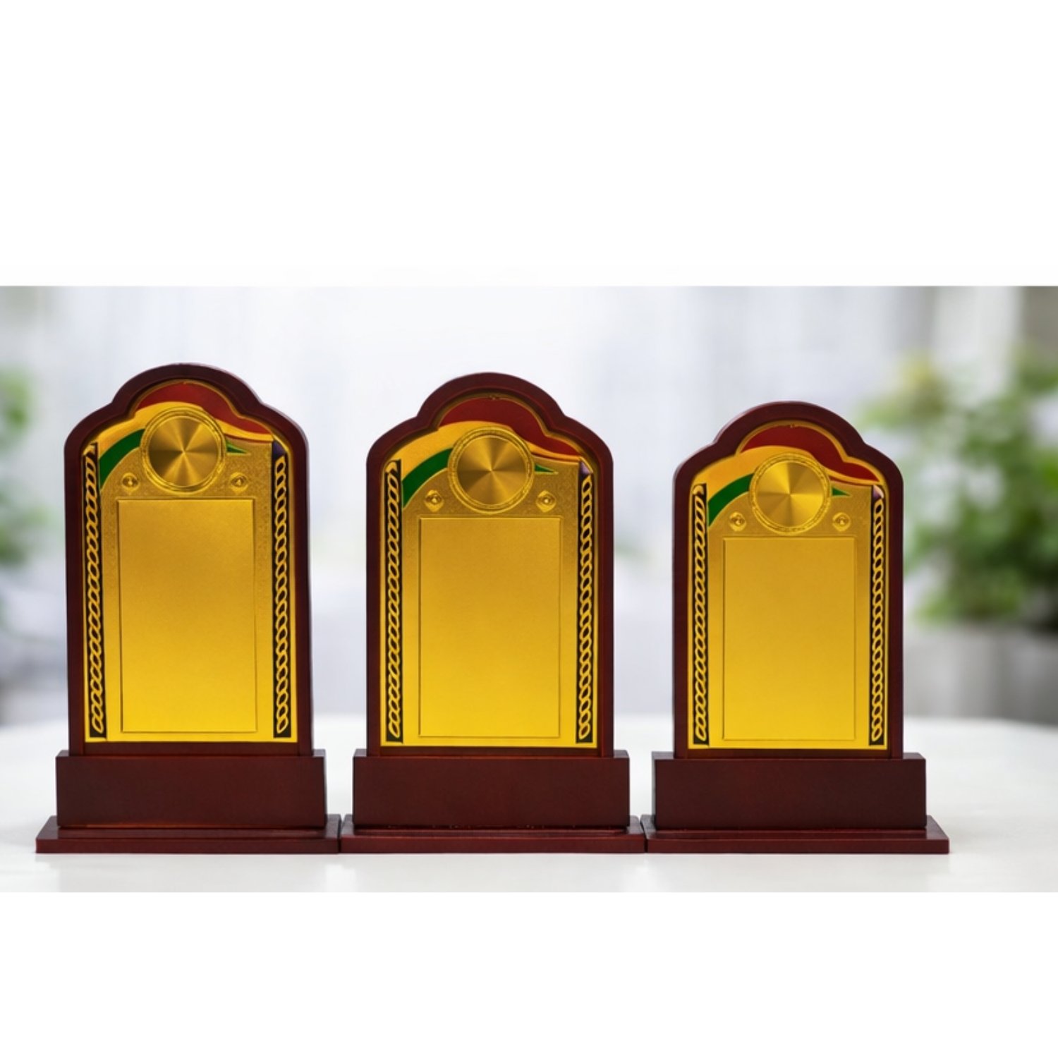 Honor excellence with our Classic Arch Gold Plate Trophy – Wooden Base, designed with a timeless arch shape and a premium gold-finish plate mounted on a rich wooden base. This elegant trophy offers a traditional yet sophisticated look, making it ideal for formal award ceremonies and prestigious recognitions.