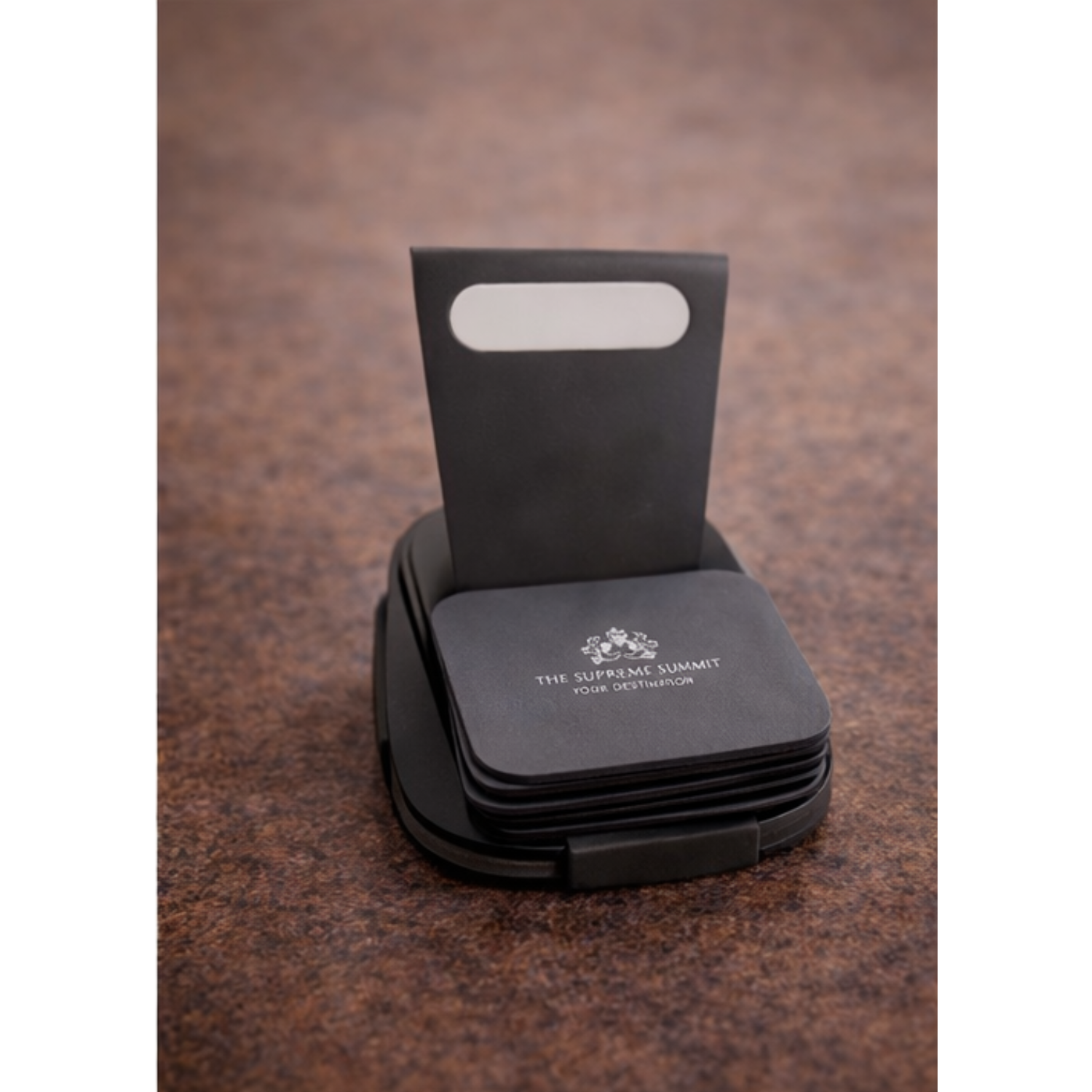 Each coaster can be customized with your logo, brand name, or artwork using precise engraving or printing. Perfect for offices, hotels, cafes, restaurants, and corporate gifting, this coaster set comes with a matching stand for neat storage and elegant presentation.