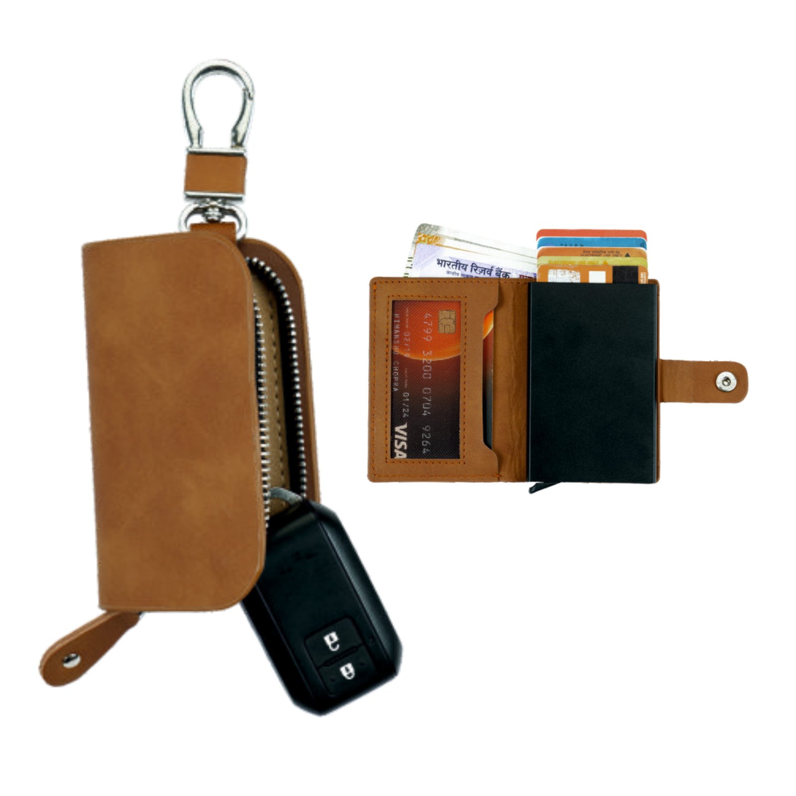 A compact and stylish 2-in-1 gift combo crafted from premium vegan leather. This set features a secure key fob case and an RFID pop-up card case designed to keep cards protected and easily accessible. Packed in a premium cardboard gift box, this combo is perfect for corporate gifting, events, and everyday personal use.