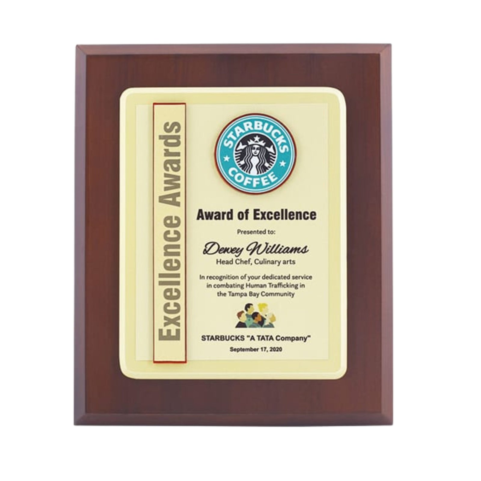 A premium wooden plaque featuring a sleek dual-tone design with a highlighted “Excellence Awards” panel. The elegant metal plate at the center offers ample space for logos, names, and personalized award text. Ideal for corporate recognition, excellence awards, employee achievements, appreciation ceremonies, and milestone celebrations. Crafted for durability and a prestigious presentation.