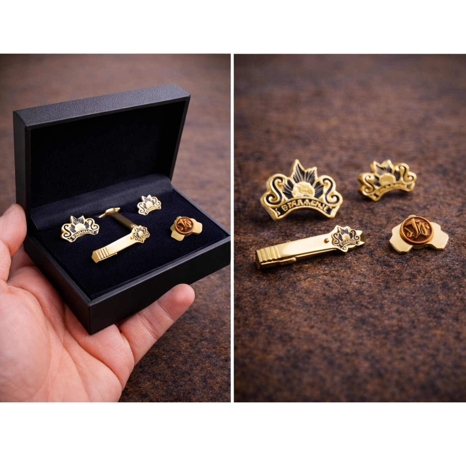 Perfect for formal wear, ceremonies, alumni meets, corporate events, and institutional gifting, this set adds a refined touch to any outfit. Each accessory is durable, lightweight, and designed for long-lasting shine.