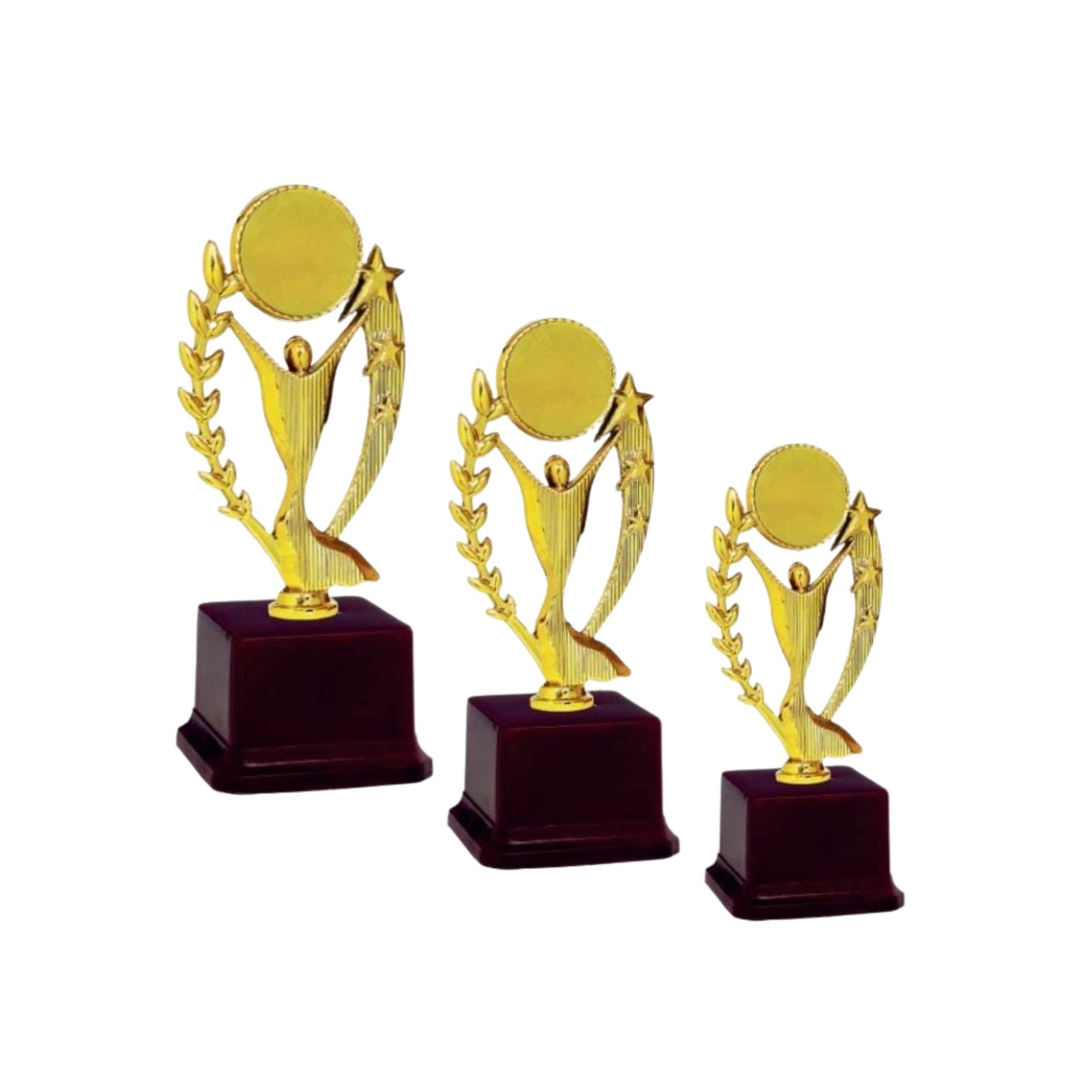 Recognize excellence with our Customized Trophy Star, designed with a graceful human figure holding a circular plate surrounded by laurel leaves and a star accent. The premium gold-finish top paired with a sturdy base makes this trophy a perfect choice for academic awards, corporate recognition, sports events, and achievement ceremonies. Personalize the center plate with your logo, message, or award title for a memorable presentation.