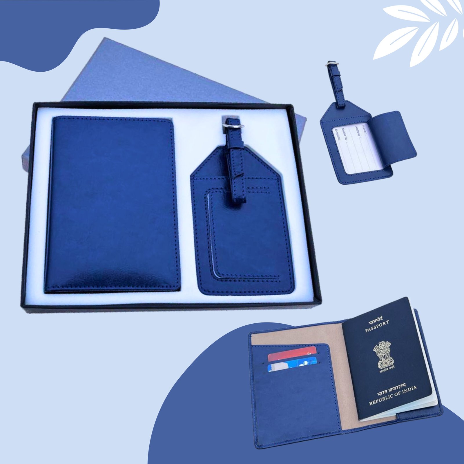 2-in-1 Gift Combo – Passport Cover & Luggage Tag (Blue)