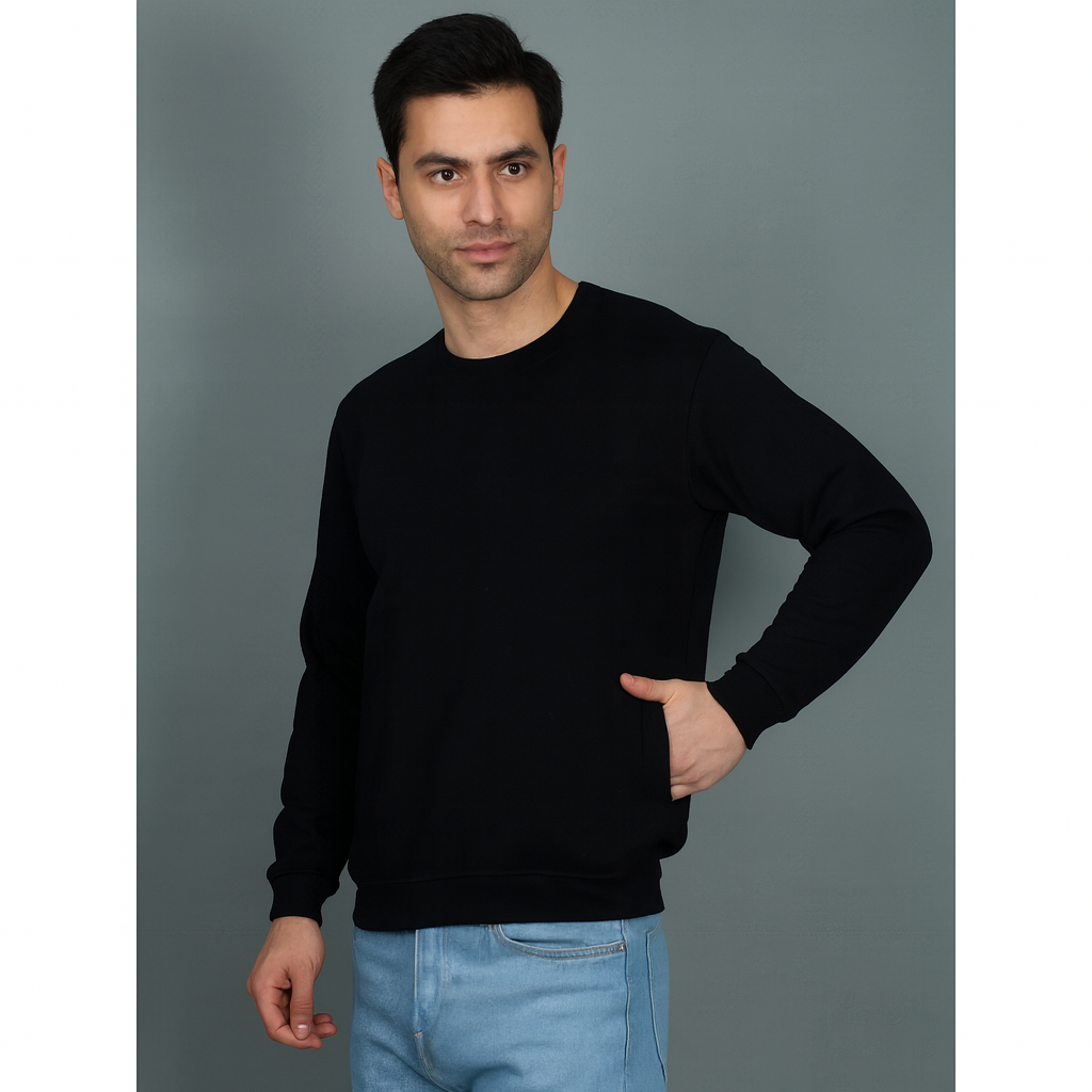 • Classic Style: Features a timeless crewneck design, ribbed cuffs, and hem in a versatile navy blue color.